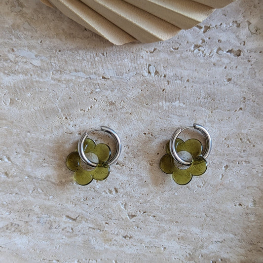 Boucles d'oreilles Blossom kaki transparent