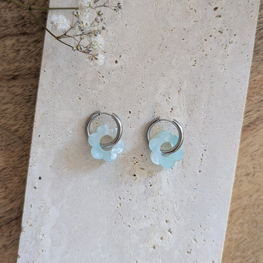 Boucles d'oreilles Blossom mix pastel bleu et blanc