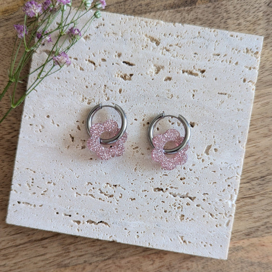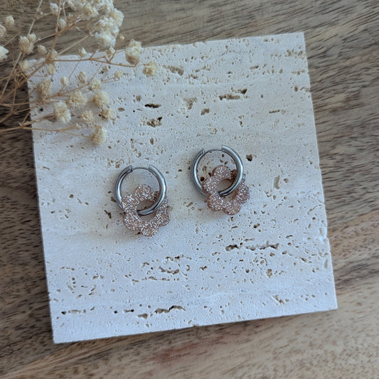 Boucles d'oreilles Blossom pailleté rose