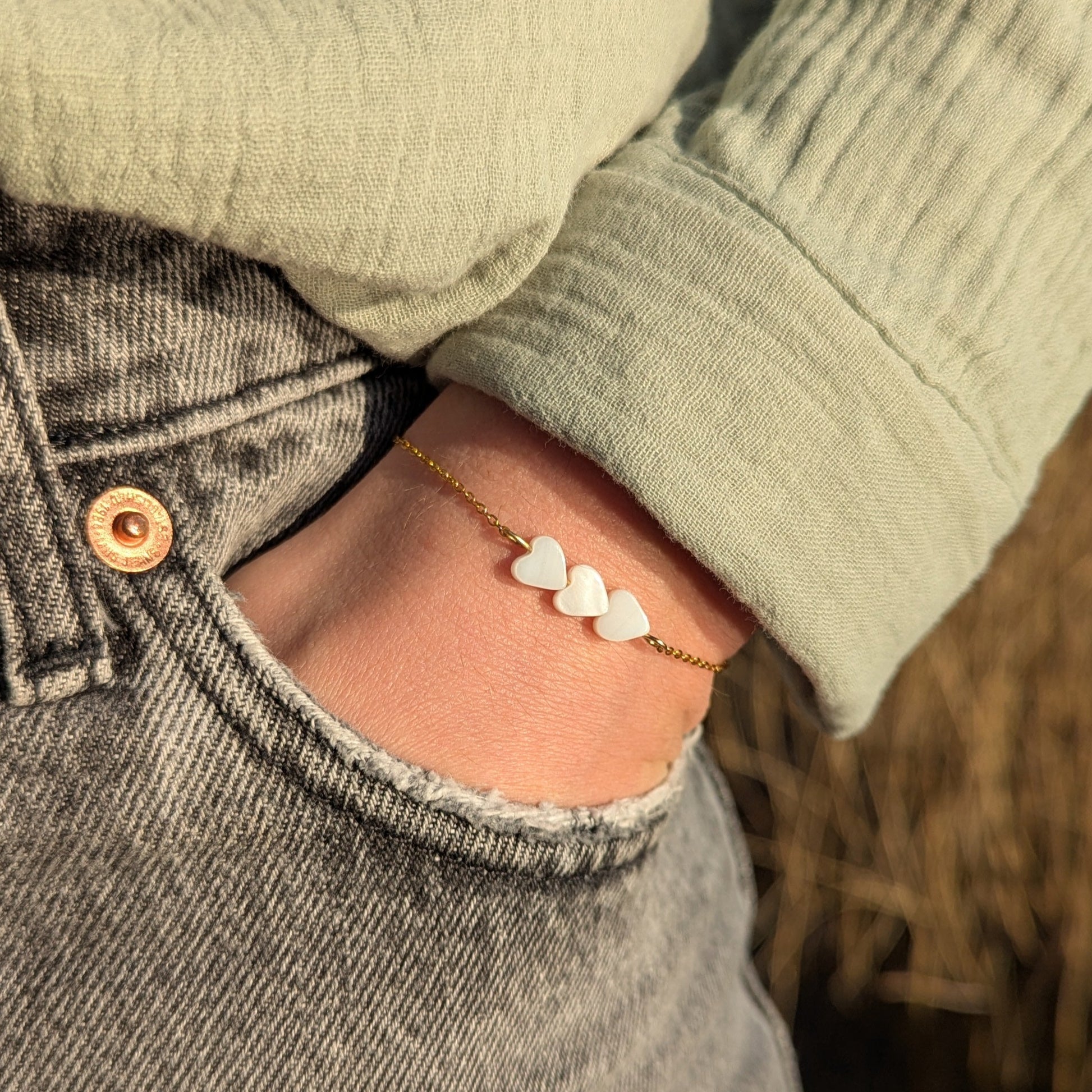 Découvrez notre bracelet Love, une pièce délicate et raffinée qui capture l’élégance à travers son design intemporel. Orné d’une fine chaîne avec des cœurs blancs entrelacés, ce bracelet est le symbole parfait de l’amour et de la douceur. Léger et subtil, il se porte aussi bien seul qu’en accumulation, apportant une touche romantique à votre poignet.